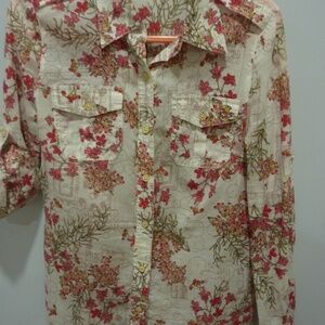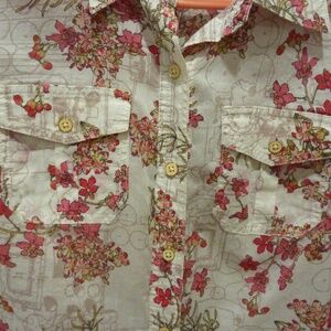 Tory Burch Button Up LONG SLEEVE FLOWER Blouse Shirt Size S