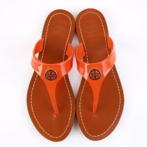 Tory Burch CAMERON Patent Leather Thong Fire Orange 5.5