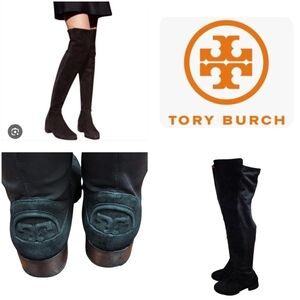 Tory Burch Caitlin Stretch Suede Over-The-Knee Boots, Black Size 7 $550