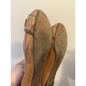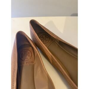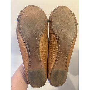 Tory Burch Camel Brown Flats Gold Logo Women’s Size 6.5M