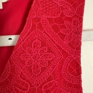 This beautiful Tory Burch statement dress is perfect to dress up or wear to work. Embroidered lace is cut into this fitted sheath, finished with a v-neck and a Scalloped-edge hem. In like new condition with no callouts. Size 8.