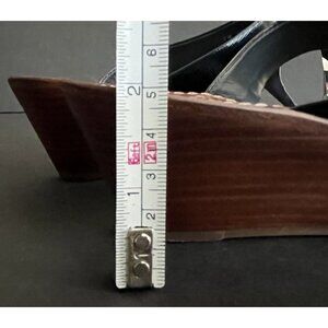 Tory Burch Cameron Sandal Sz 7 Wedge Thong Blue Patent Leather Gold Logo VGC