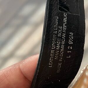 In fair condition. Shows sign of wear on inner sole. Small miller style logo in gold is in excellent condition. Tory Burch T strap flip flops in black patent leather. Size 9.5.