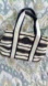 Beautiful 2 way Tory Butch canvas tote. Lots of interior compartments for easy organization. Magnets at center closure and sides. Can fit a lot even though the bag doesn’t look big - even an iPad (see last photo inside bag: ipad, full zippy wallet, cosmetic pouch, sunglasses all fit with room to spare).