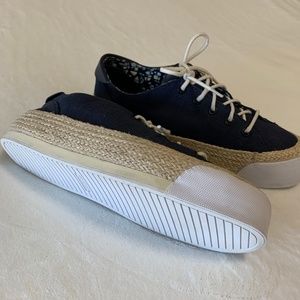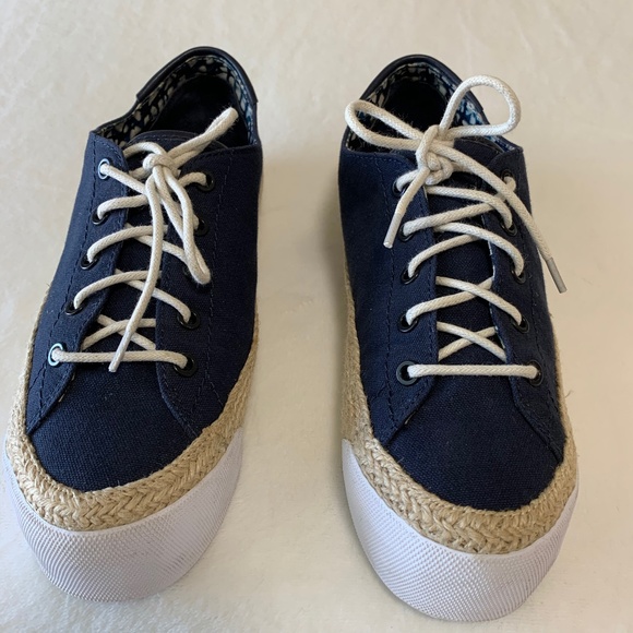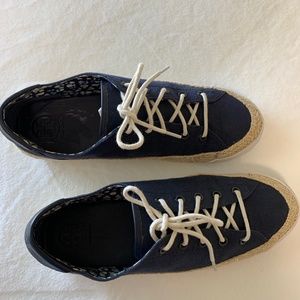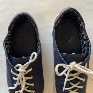 Tory Burch Women's Canvas Platform Lace Up Espadrille Fashion Sneakers Sz 9 M Tory Navy