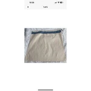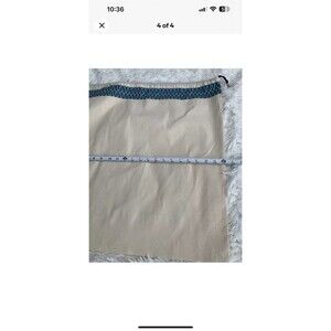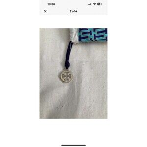 This Tory Burch canvas shoe/purse dust bag is perfect for travel or storage. The bag features a drawstring closure and an adjustable strap for a comfortable fit. It has a square shape with a cream exterior color and purple handle/strap color. The bag is made of a cotton blend material with a matte finish and has embroidered accents.