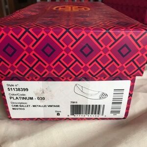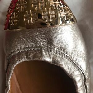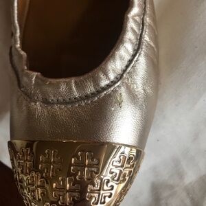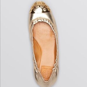 Tory Burch Cap Toe Ballet Cami Metallic Flats Shoes Leather Gold Color Size 8