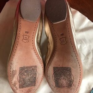 Any questions, please message me. Description Ballet flat Cap toe with signature designer gold hardware Brushed gold leather upper Elasticized trim to curve to foot Leather lining and sole Slight lift at heel