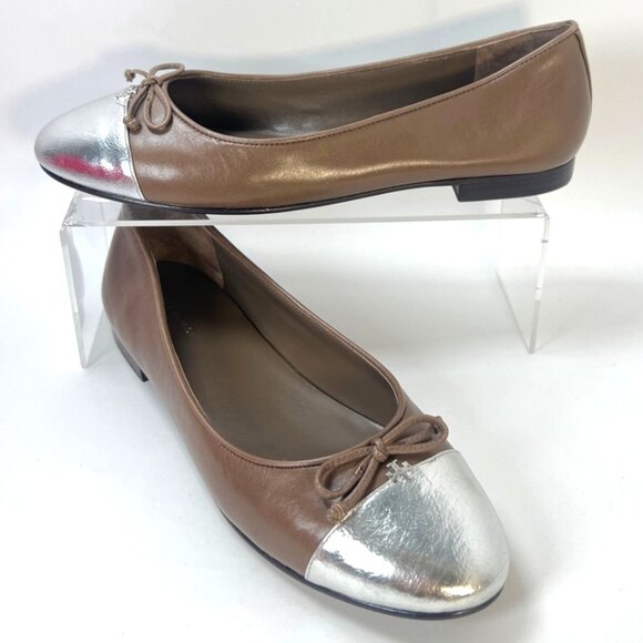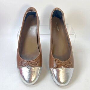 Tory Burch Cap Toe Ballet Flats Brown Silver Metallic Women Size 8