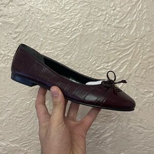 Tory Burch Cap Toe Ballet Flats Size 8 Croc Embossed Leather Logo Bow Shoe NIB