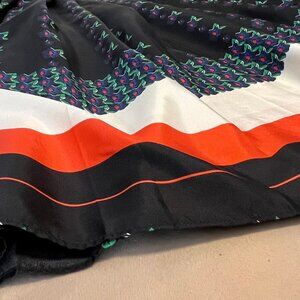 Princess Diana–inspired elegance. English tea rose print on lustrous silk-satin twill. Pleated striped knee-length hem. Hidden zipper. Unlined. Beautiful movement. Pre-owned ✅ No visible wear.
