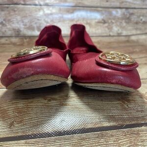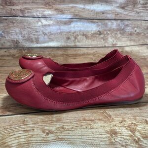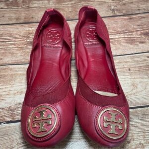 Tory Burch Caroline 2 Cabernet Leather Ballet Flats Gold Logo Women's Size 5 m