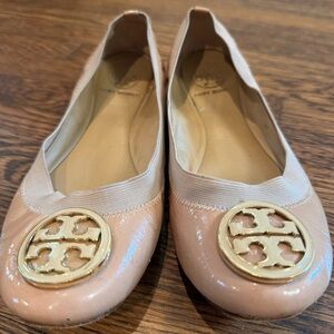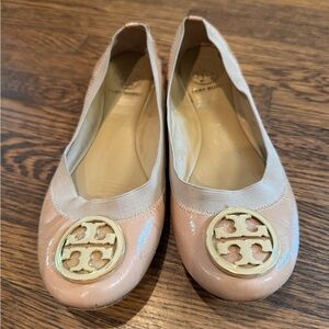 Tory Burch Caroline Ballerina Cream Flats with Iconic Logo Medallion Size 6.5
