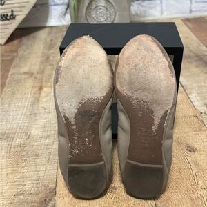 Tory Burch Caroline Ballet Flats khaki Leather Gold Logo Hardware Size 6M