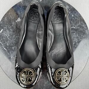 Tory Burch Caroline Black Patent Leather Flat Ballet Shoes Women’s Size 6.5M US
