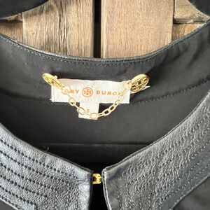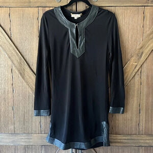 Tory Burch Caroline Faux Leather Trimmed Black Tunic Size Small