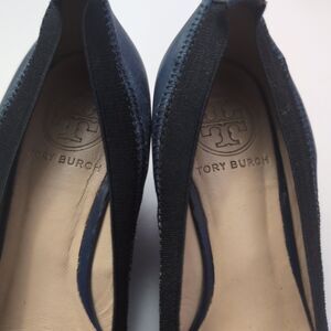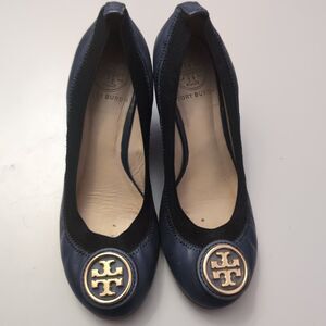 Tory Burch Caroline Navy Blue Ballet Pump Wedges Women's Size 5M Multi Color