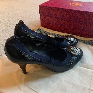 Tory Burch Caroline Navy Patent Mid-Heel Sz 9