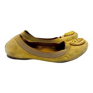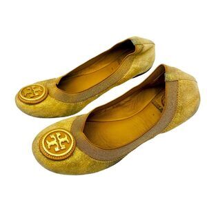 Tory Burch Caroline Sparkling Gold Beige Ballet Flats Sz 6M