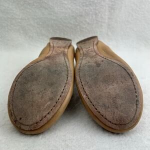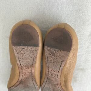 Tory Burch Caroline Women's Tan Leather Gold Logo Medallion Ballet Flats US 5M
