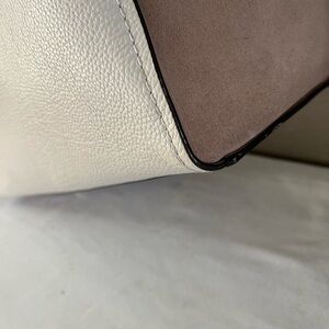 Tory Burch Tote, Carson Colorblock Bag, New Ivory Leather Tote, Luxury Designer Handbag, Structured Work Bag, Everyday Carryall, Soft Pebbled Leather, Large Tote Bag, Chic Office Tote, Colorblock Leather Purse, Style 81957 Tory Burch, Minimalist Designer Bag, Neutral Leather Handbag, Polished Casual Tote, Tory Burch Shoulder Bag