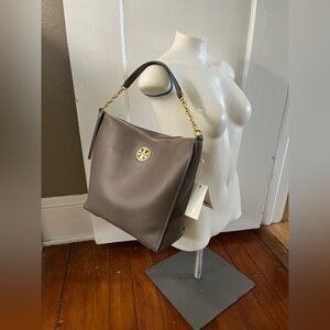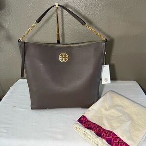 Tory Burch Carson Hobo, Tory Burch Pebbled Leather Bag, NWT Tory Burch Tote, Tory Burch Shoulder Bag, Carson Style 75421, Silver Maple Bag, Designer Leather Hobo, Everyday Work Tote
