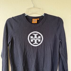 Tory Burch Cashmere Wool Blend Crewneck Navy Blue pullover lite sweater size S
