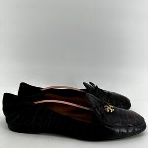 Tory Burch Charm Loafers Leather Collapsible Back Matte Croc Emboss Black 10
