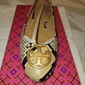 Excellent condition w copy of receipt and pouch for flats. Size 9. Snake skin only worn once for about 20 minutes. Too narrow for my foot