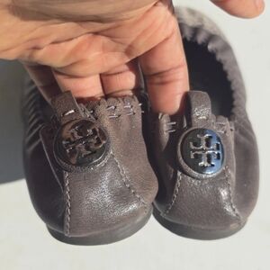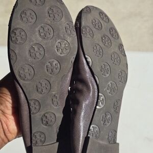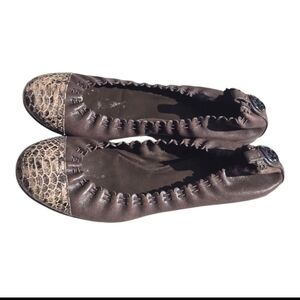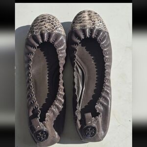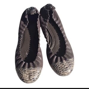 Tory Burch Chelsea Gray Leather Snakeskin Cap-Toe Ballet Flats 7M Women Shoes