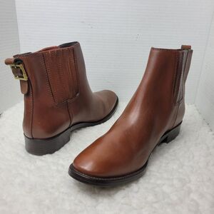 Tory Burch Chelsea Bootie Womens Size 10.5M Bronw Leather Buckle Acccent Back Great Condition Barely Worn See Pictures For More Details.