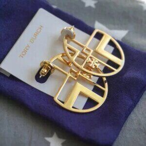 Tory Burch Chevron Statement Hoop Earrings in Gold (Brand New)