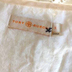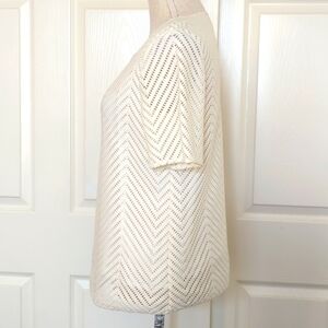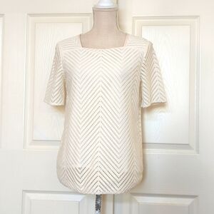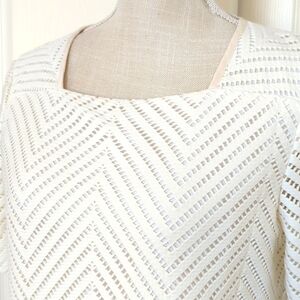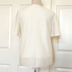 Tory Burch Chevron Textured White Blouse. Sheer with a light fabric underlay. Square neck.