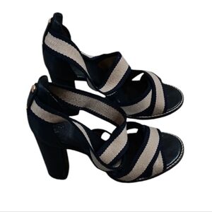 Tory Burch Chic Navy Blue and Cream Clueless Preppy Strappy Heels Size 7.