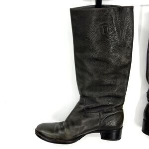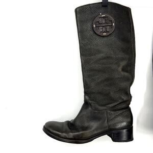 Tory Burch Chocolate Brown Tall Pebbled Leather Heel Riding Boots Logo Size 9 M