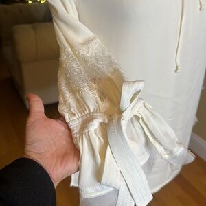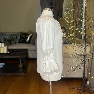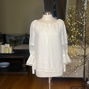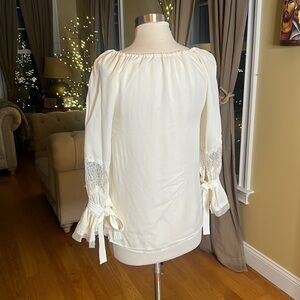 Tory Burch Christy Boat Neck, Lace Inset Long Sleeve Silk Blouse Small