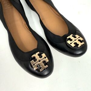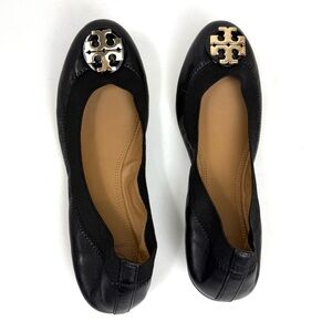 Tory Burch Claire Elastic Ballet Flats black big logo designer size 6
