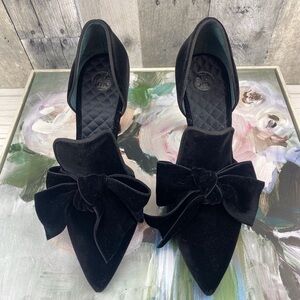 Tory Burch Clara Velvet Bow Pointed Toe Heels in Black Size 10.