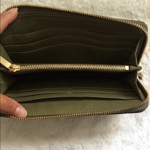 TORY BURCH CLARA ZIP CONTINENTAL WALLET. COLORGREEN/KHAKI. EASILY ORGANIZE ALL YOUR ESSENTIALS WITH THE CLARA ZIP CONTINENTAL WALLET. CRAFTED OF PEBBLED ITALIAN LEATHER AND OFFERED IN A TIMELESS NEUTRAL HUE, THE CHIC SHAPE FEATURES A SIGNATURE GOLD LOGO ON THE FRONT AND PLENTY OF POCKETS. HAS EXTERIOR FRONT POCKET WITH FOLDOVER FLAP, 2 INTERIOR CURRENCY COMPARTMENTS, 8 INTERIOR CARD SLOTS, 1 CENTER ZIP COMPARTMENT AND TONAL LINING.