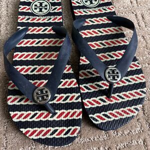 Tory Burch Classic Flip Flop Women's 6 Red White Blue Casual Travel Vacation