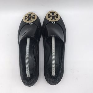 Tory Burch Classic Reva Butter Soft Leather Black Gold Ballet Flats Women's 6.5M