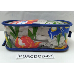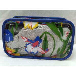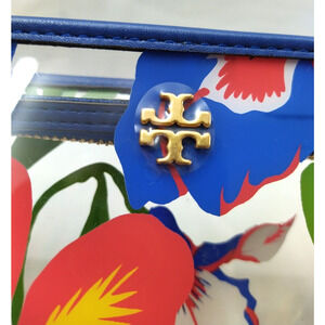 Tory Burch Clear Plastic Multicolor Flower Zipper Closure Cosmetic Pouch Wallet