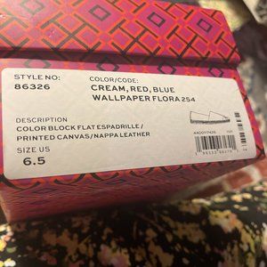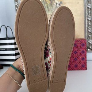 Tory Burch Color Block Flat Espadrilles Printed Canvas Nappa Leather Size 6.5