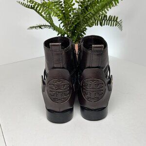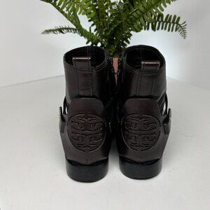 Tory Burch Colton Flat Leather Bootie Dark Brown logo Size 6