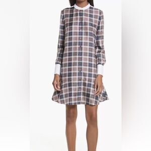 Tory Burch Cora Milano Tartan Silk Mini Brown Blue Shirt Dress Plaid Size 0