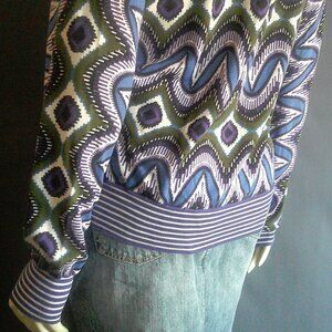 Tory Burch Cotton Olive Blue Ikat Cardigan M