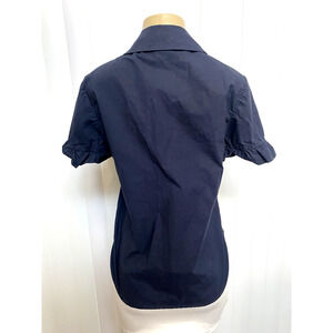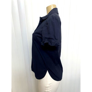 Tory Burch Cotton Shirt Half Button Navy Short Sleeve Ruffled Stretch Blue Top 8