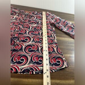 Tory Burch Cotton Silk Blend Wave Print Button Front Boho Blouse Tassels Size 6