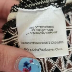 This is a beautiful piece by Tory Burch! It is a size small and is a cotton blend. This is not a cheap or flimsy dress. This is high quality and is made to last! Excellent used shape!