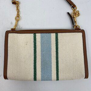 Tory Burch Cream Brown Woven Striped Crossbody Bag | Small Size